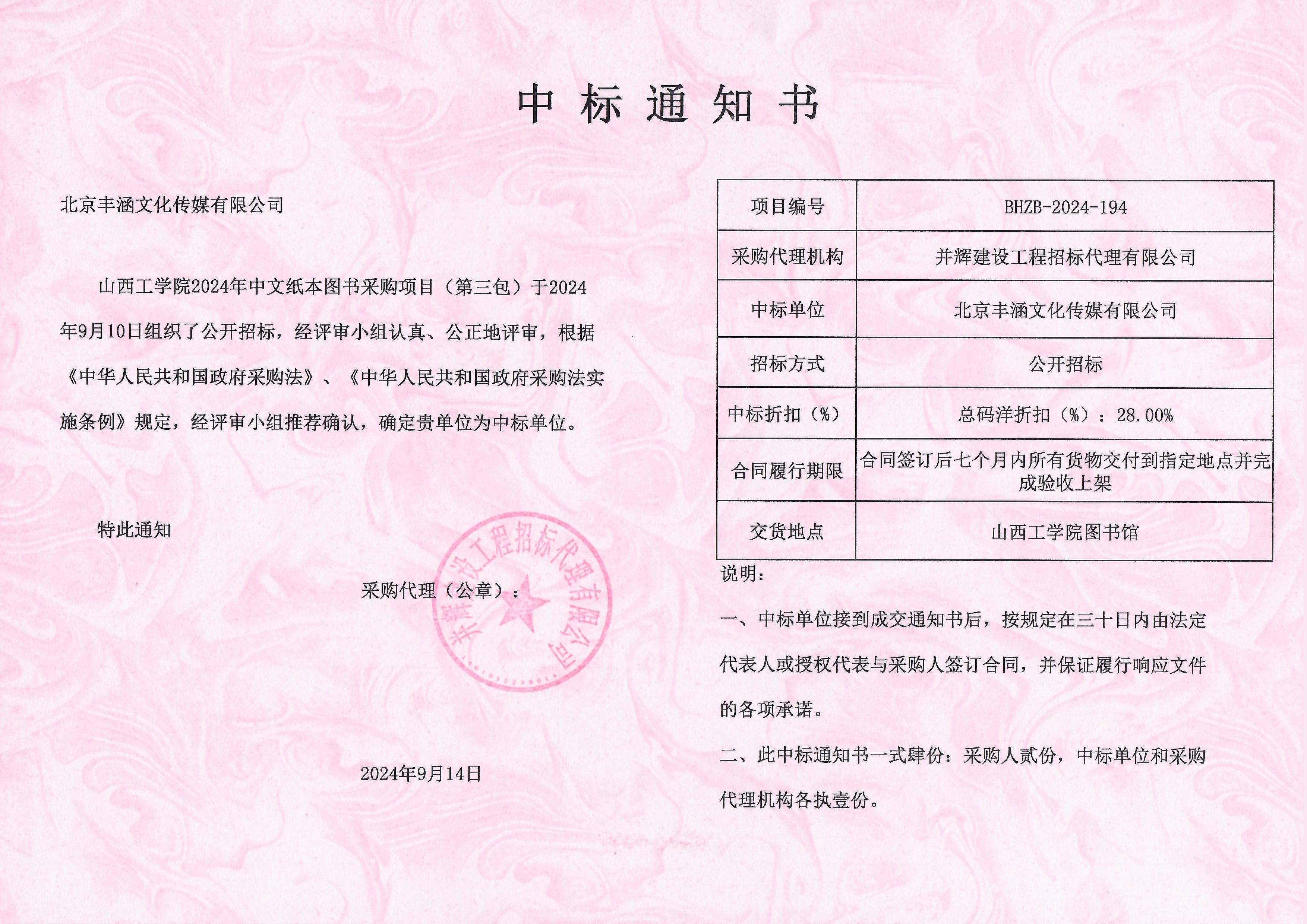 2024年中标太原市图书馆项目政府采购公告